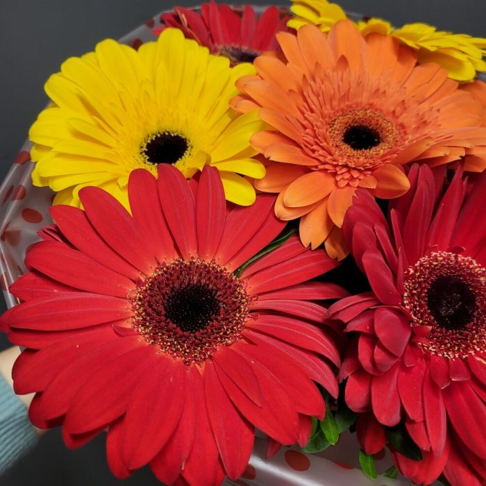 Гербера – 7 шт.зелень декоративная – 1 шт.Упаковка дизайнерская – 1 шт.