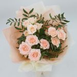 Нежные кремовые кустовые розочки в стильном оформлении. Такой букет всегда уместен и подойдёт для любого повода: День Рождения, именины, годовщина свадьбы, рождение ребенка, 8 марта, День Святого Валентина, выпускной и т.д. Можно вручить маме, сестре, подруге, коллеге, учителю, любимой.